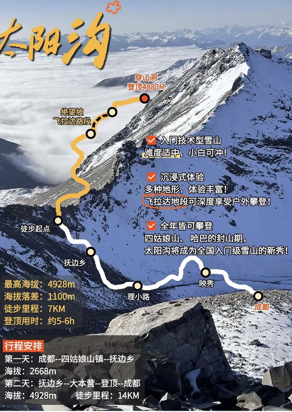 游玩类型多样,游览风景、雪山攀登、高原露营、舒心住宿,为您制定方案!